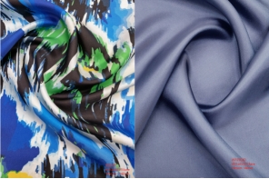 此產(chǎn)品經(jīng)緯紗由人絲和兩種規(guī)格的真絲組成,且配以特殊的規(guī)律排列而成,布面微皺效果使印花若隱若現(xiàn),使面料風(fēng)格具有個(gè)性化、多樣化的特點(diǎn),進(jìn)而滿足消費(fèi)者對服裝的時(shí)尚化、美觀化的設(shè)計(jì)需求。