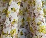 此產(chǎn)品經(jīng)緯紗是由真絲和人絲組成,緯紗加強(qiáng)捻,采用縐組織,形成亂麻風(fēng)格,質(zhì)地柔軟,有肌理感的布面配上粉色的花型,給人一種春意盎然的感覺。
