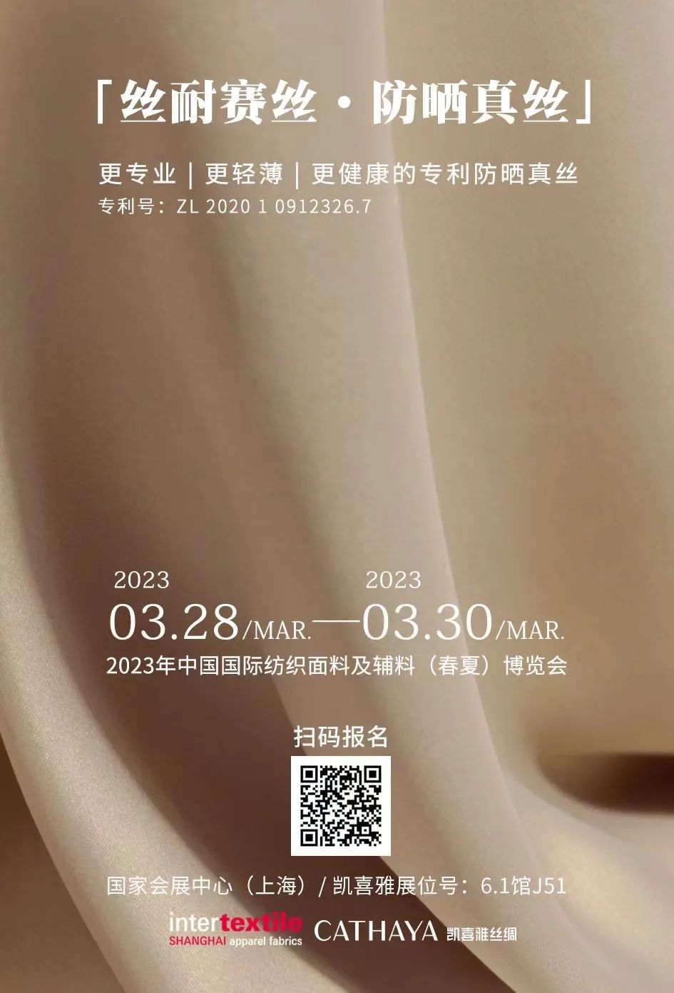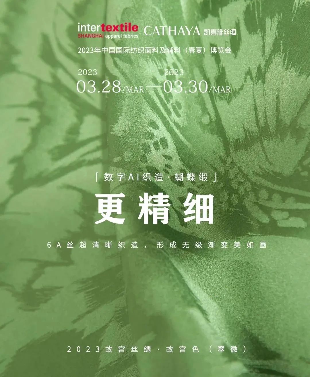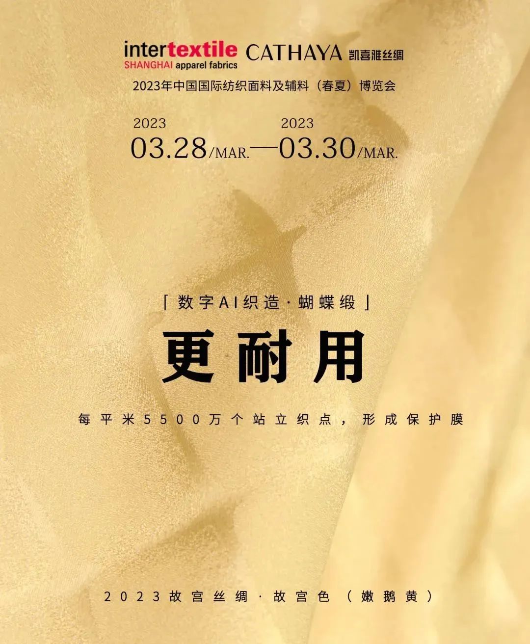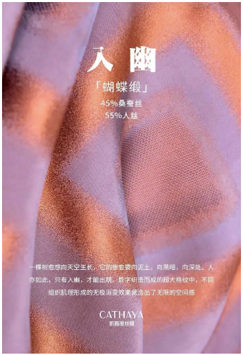 2023intertextile春夏面輔料展期間,凱喜雅以“絲·變”為主題,帶著AI織造、絲綢專業(yè)防曬、宮廷絲綢等一系列自主研發(fā)的新品面料亮相上海面料展,以“絲·變”為主題,用新科技做底層支撐,融入古老文化,獨(dú)家研發(fā)了多款專利新絲綢面料。