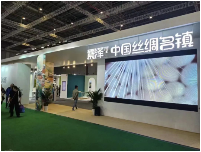 本次震澤組團(tuán)參加2023intertextile春夏家紡展,以“震澤·中國絲綢名鎮(zhèn)館”的整體形象展現(xiàn)震澤企業(yè)的風(fēng)采,搭建融入國潮元素,以特色小鎮(zhèn)和產(chǎn)業(yè)集群形象輸出為主。集群共有9家絲綢企業(yè)參展,由企業(yè)展區(qū)、“震澤絲綢杯”大賽展區(qū)兩部分組成。
