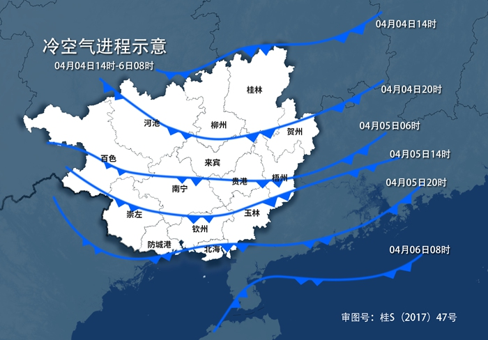受強勢的暖濕氣流影響,3-4日廣西各地氣溫速度飆高,廣西大部最高氣溫在28℃或以上,桂西北局地將有高溫冒頭,天氣悶熱潮濕。4日下午起冷空氣到訪,5-6日廣西各地日平均氣溫下降6~8℃。天氣將由暖(熱)轉(zhuǎn)陰涼,提醒大家適時添外套。