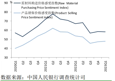 產(chǎn)品銷售價(jià)格感受指數(shù)。來(lái)源:中國(guó)人民銀行