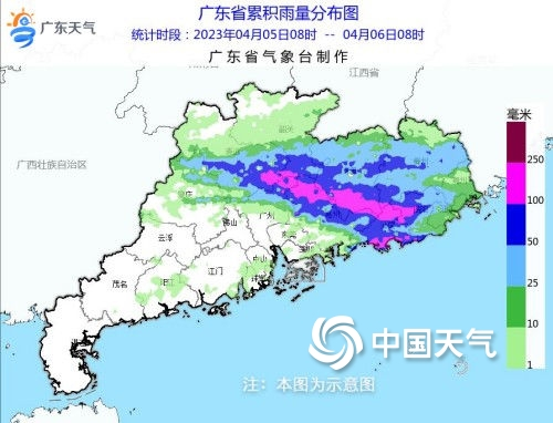 天氣實(shí)況:5日白天到6日早晨,韶關(guān)南部、清遠(yuǎn)南部、河源、梅州、廣州從化、惠州、汕尾和揭陽(yáng)出現(xiàn)了大雨到暴雨,部分市縣大暴雨,并出現(xiàn)了雷電、短時(shí)強(qiáng)降水和7級(jí)~8級(jí)的雷暴大風(fēng),其余市縣出現(xiàn)了分散陣雨。全省平均雨量18.3毫米,超過(guò)25毫米鎮(zhèn)街占全省總鎮(zhèn)街?jǐn)?shù)的30.1%,其中汕尾陸河縣河田鎮(zhèn)錄得全省最大雨量229.1毫米。