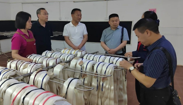 小分隊(duì)一行奔赴浦北縣桂合絲綢有限公司等企業(yè)進(jìn)行考察對(duì)接,先后查看了繅絲生產(chǎn)線和蠶繭烘干設(shè)備,實(shí)地了解繅絲廢水凈化運(yùn)行情況,了解蠶桑基地建設(shè)和蠶繭收購(gòu)利用情況,就生絲、緞綢、家紡產(chǎn)品出口創(chuàng)匯進(jìn)行了深入交流,并就鎮(zhèn)巴縣蠶桑資源深度鏈接和后期合作方向與企業(yè)負(fù)責(zé)人進(jìn)行了溝通對(duì)接。