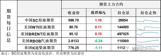 【1】WTI主力原油期貨收漲0.09美元,漲幅0.11%,報80.7美元/桶;布倫特主力原油期貨收漲0.13美元,漲幅0.15%,報85.12美元/桶;INE原油期貨收漲1.1%,報588.7元。