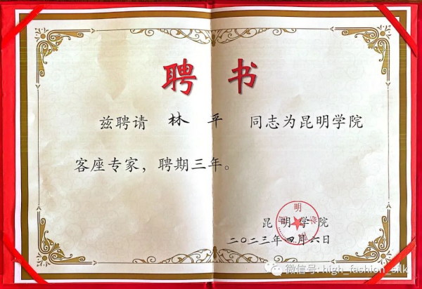 近日,中國絲綢協(xié)會特邀副會長、達利絲綢(浙江)有限公司董事長林平先生被西安工程大學(xué)聘任為客座教授,被昆明學(xué)院聘為客座專家。