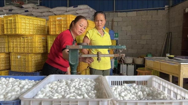 2023年4月7日百色市那坡縣百合鄉(xiāng)、德隆鄉(xiāng)等南部鄉(xiāng)鎮(zhèn)開(kāi)始收售蠶繭,標(biāo)志著2023年廣西蠶繭收購(gòu)拉開(kāi)序幕。那坡縣蠶繭上市時(shí)間較去年提前8天,收購(gòu)價(jià)格為56元/kg,比去年同期46元/kg提高21.7%,蠶繭質(zhì)量較好,預(yù)計(jì)全縣第一批蠶繭產(chǎn)量在400噸左右。
