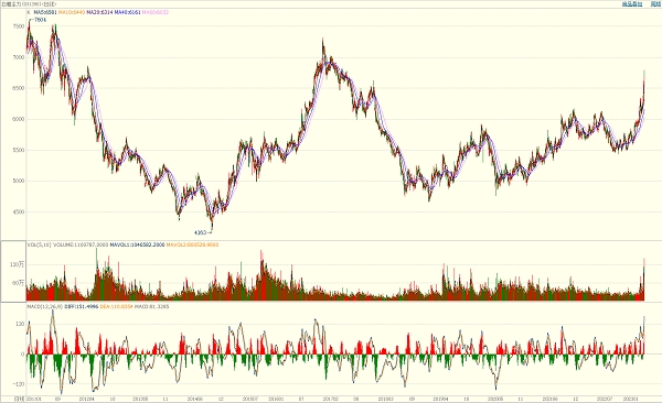 今年春節(jié)后,國內(nèi)鄭商所白糖期貨價格跳空高開,逐步漲至6000元/噸以下。經(jīng)過盤整,迅速啟動上漲態(tài)勢,直至此番超過6700元/噸。