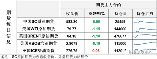 【1】WTI主力原油期貨收跌0.93美元,跌幅1.15%,報(bào)79.77美元/桶;布倫特主力原油期貨收跌0.94美元,跌幅1.1%,報(bào)84.18美元/桶;INE原油期貨收跌0.9%,報(bào)583.8元。