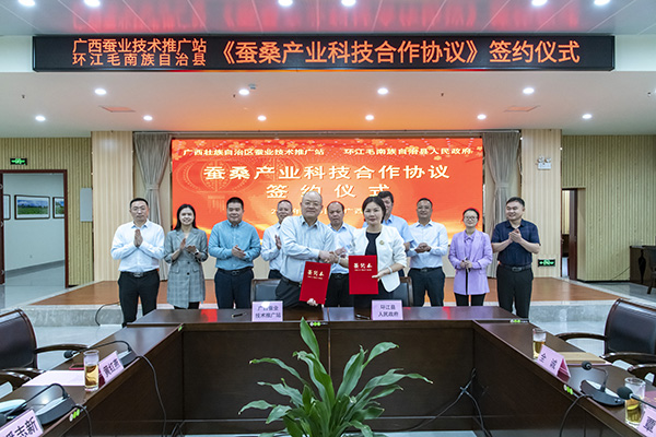 行業(yè)合作丨廣西蠶業(yè)技術(shù)推廣站與環(huán)江毛南族自治縣人民政府舉行《蠶桑產(chǎn)業(yè)科技合作協(xié)議》簽約儀式