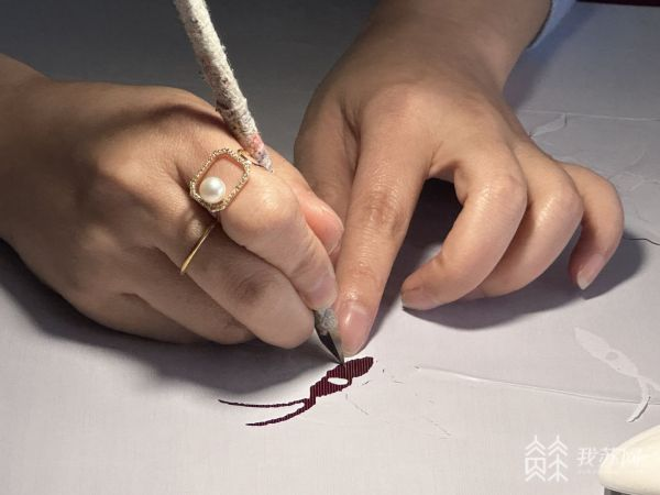 戴老師現(xiàn)場(chǎng)演示雕花技藝,給同學(xué)們展示雕花技藝的心細(xì)、手巧和創(chuàng)意。絨毛挺立,彈性豐滿,久壓不倒,緞底絨花,相得益彰,層次分明,立體感強(qiáng)。如此巧妙的手工技藝,讓同學(xué)們深刻地感受到了匠心制作的工藝和文化傳承的魅力。