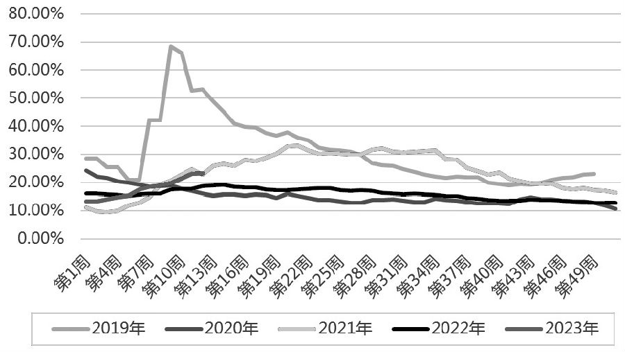 近幾年,受豬價高幅波動影響,二次育肥群體不斷擴大,不再局限于散戶及調(diào)運商,更多中型規(guī)模場及外購育肥戶靈活參與,使得二育市場的影響力逐漸加大。比如外購仔豬的企業(yè)并不只做外購仔豬育肥,還會根據(jù)行情做短期二育。2022年主要有兩波二育,一波在4月中旬前后,一波在9月中旬前后。從2022年的生豬價格走勢可以看出,每波二育進場短期內(nèi)對豬價均有明顯提振作用,同時也讓養(yǎng)殖戶對后市有更高預(yù)期。但隨著二育體量的不斷增加以及持續(xù)的壓欄行為,導致后期大豬集中釋放,打壓市場價格,因此去年旺季時(11—12月)豬肉價格反而持續(xù)走低。