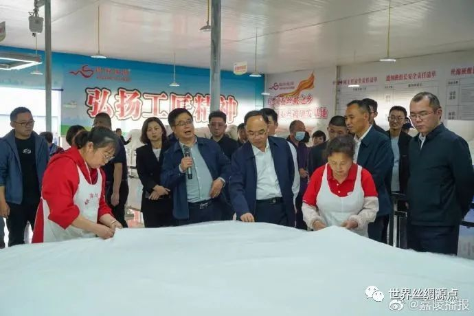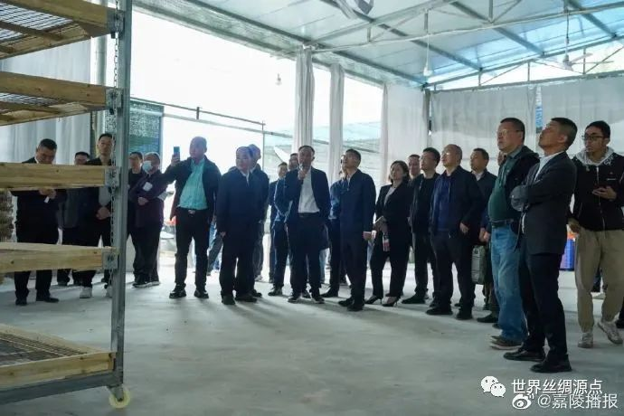 當(dāng)天上午,與會人員參觀了嘉陵區(qū)大通鎮(zhèn)蠶?;?、南充銀海絲綢有限公司蠶絲被生產(chǎn)車間、四川尚好桑茶有限公司桑產(chǎn)業(yè)生物科技園、四川順成紡織品有限公司繅絲織綢生產(chǎn)線。