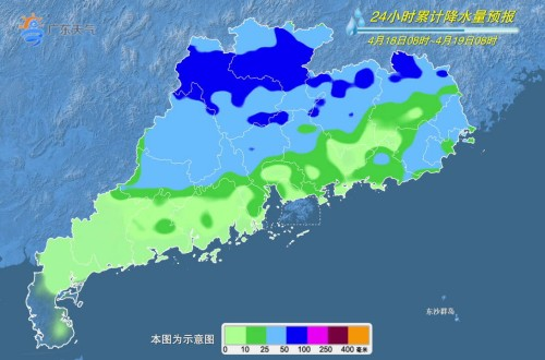 具體預(yù)報(bào):18日到19日,粵北、珠三角、粵東陰天有大雨到暴雨局部大暴雨,雷州半島多云,粵西的其余地區(qū)陰天中雷雨局部大雨或暴雨。