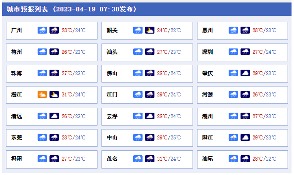 溫馨提醒:1.未來幾天廣東雷雨頻繁,需注意防御局地雷擊、雷暴大風(fēng)和小冰雹等強(qiáng)對流天氣及其次生災(zāi)害。2.早晚能見度較差,注意雨霧天氣對交通等影響。3.春季天氣變化節(jié)奏快,廣東氣溫波動較大,需注意適時(shí)增減衣物。4.請注意森林防火和家居用火安全。