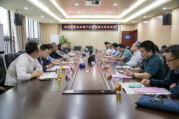 廣西蠶業(yè)技術(shù)推廣站站領(lǐng)導(dǎo)班子,自治區(qū)工信廳紡織醫(yī)藥處、廣西絲綢協(xié)會(huì)相關(guān)領(lǐng)導(dǎo)參加座談。