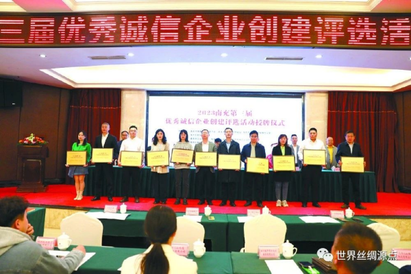 4月25日上午,2023南充第三屆優(yōu)秀誠信企業(yè)創(chuàng)建評(píng)選活動(dòng)授牌儀式舉行。經(jīng)過推薦申報(bào)、審核初評(píng)、公眾投票、綜合評(píng)審、媒體公示等一系列環(huán)節(jié),南充銀海絲綢有限公司、四川尚好茶業(yè)有限公司榮獲“2023南充十佳守信用示范企業(yè)”,四川順成紡織品有限公司、南充金富春絲綢有限公司、四川尚非服飾有限公司榮獲“2023南充優(yōu)秀誠信企業(yè)”。