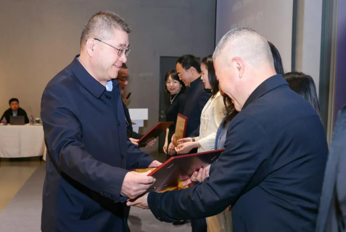 中國(guó)絲綢博物館館長(zhǎng)為捐贈(zèng)企業(yè)代表頒發(fā)收藏證書(shū)