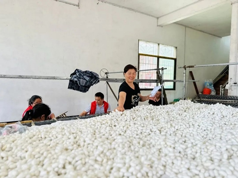 據(jù)了解,瑤埃村桑蠶發(fā)展自2005年至今已有十八年的歷史,是積極響應(yīng)國家實(shí)施“東桑西移”項(xiàng)目工程地區(qū)之一,近年來,在各級黨委、政府的大力支持下,種植大戶得到扶持,越來越多的農(nóng)戶加入桑蠶“大家庭”中,種桑面積進(jìn)一步擴(kuò)大。目前,瑤埃村桑園面積有1000余畝,全村種桑養(yǎng)蠶戶60余戶,全年產(chǎn)值超200萬元。