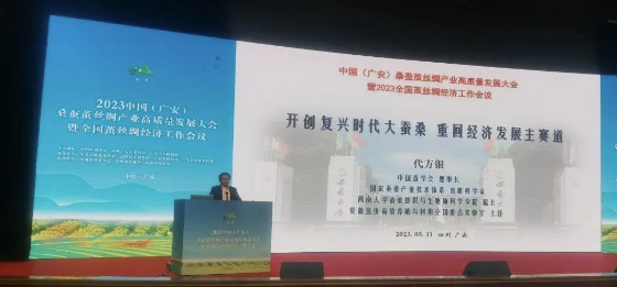 中國蠶學(xué)會理事長、國家蠶桑產(chǎn)業(yè)技術(shù)體系崗位首席科學(xué)家代方銀在2023中國(廣安)桑蠶繭絲綢產(chǎn)業(yè)高質(zhì)量發(fā)展大會暨全國繭絲綢經(jīng)濟工作會議作《開創(chuàng)復(fù)興時代大蠶桑重回經(jīng)濟發(fā)展主賽道》報告。
