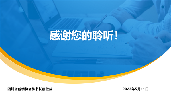 受四川省絲綢協(xié)會(huì)會(huì)長(zhǎng)陳祥平委托,四川省絲綢協(xié)會(huì)唐秘書(shū)長(zhǎng)從運(yùn)行情況、特色優(yōu)勢(shì)、存在問(wèn)題和努力方向等四方面作《砥礪前行中的四川桑蠶絲綢產(chǎn)業(yè)》主題演講。