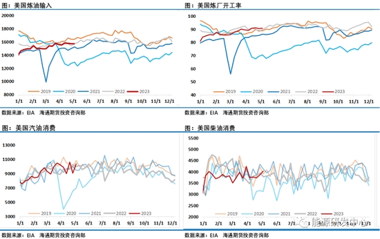 歐佩克月報(bào)方面維持2023年全球經(jīng)濟(jì)增長(zhǎng)預(yù)測(cè)為2.6%(此前預(yù)測(cè)為2.6%)。但重點(diǎn)提到了美國(guó)債務(wù)上限問(wèn)題目前尚未得到解決,這可能會(huì)帶來(lái)經(jīng)濟(jì)后果,這也是近期市場(chǎng)高度關(guān)注的潛在風(fēng)險(xiǎn)點(diǎn)。歐佩克對(duì)2023年全球石油需求增速預(yù)期維持在230萬(wàn)桶/日不變,預(yù)計(jì)中國(guó)2023年的石油需求將增加80萬(wàn)桶/日(之前預(yù)測(cè)為76萬(wàn)桶/日)。歐佩克4月石油產(chǎn)量下降了19.1萬(wàn)桶/日,降至2860萬(wàn)桶/日,俄羅斯3月份原油產(chǎn)量下降30萬(wàn)桶/日,至970萬(wàn)桶/日。2023年對(duì)歐佩克原油需求的預(yù)測(cè)穩(wěn)定在2930萬(wàn)桶/日。維持2023年非歐佩克產(chǎn)油國(guó)供應(yīng)增速預(yù)測(cè)在140萬(wàn)桶/日不變。據(jù)二手資料顯示,4月安哥拉原油產(chǎn)量較上月增加7.9萬(wàn)桶/日至108.5萬(wàn)桶/日,沙特原油產(chǎn)量較上月增加9.5萬(wàn)桶/日至1050萬(wàn)桶/日。伊朗原油產(chǎn)量增加4.8萬(wàn)桶/日,至263萬(wàn)桶/日。尼日利亞原油產(chǎn)量較上月減少17萬(wàn)桶/日至118萬(wàn)桶/日。伊拉克原油產(chǎn)量較上月減少20.3萬(wàn)桶/日至413.9萬(wàn)桶/日。伊拉克表示從5月起自愿減產(chǎn)石油21.1萬(wàn)桶/日,但現(xiàn)實(shí)情況是,由于關(guān)閉了一條關(guān)鍵管道,該國(guó)減產(chǎn)量將接近45萬(wàn)桶/日。