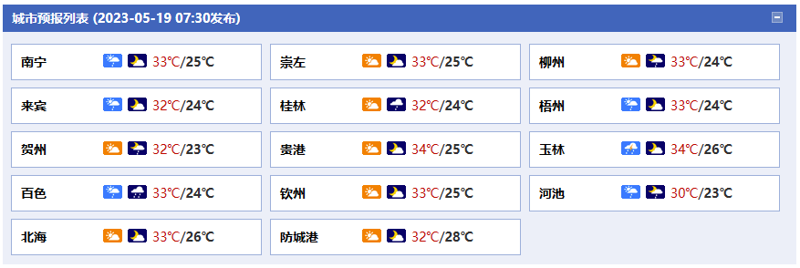 廣西氣象臺(tái)19日05時(shí)發(fā)布預(yù)報(bào):