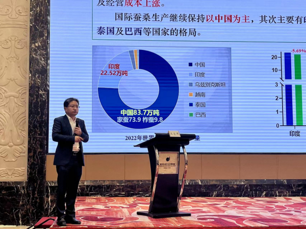 作為本次會(huì)議的舉辦地,湖州是世界絲綢文化的發(fā)祥地之一,是我國(guó)重要的優(yōu)質(zhì)蠶繭生產(chǎn)基地、高品位生絲和優(yōu)質(zhì)絲綢出口基地,先后被國(guó)務(wù)院評(píng)為“中國(guó)絲綢之鄉(xiāng)”和“中國(guó)綢都”。近年來(lái),湖州積極應(yīng)對(duì)蠶桑產(chǎn)業(yè)發(fā)展瓶頸,圍繞“傳承發(fā)展、提質(zhì)增效”的目標(biāo),積極融入“一帶一路”,深入實(shí)施“科技強(qiáng)農(nóng)”“機(jī)械強(qiáng)農(nóng)”,在國(guó)內(nèi)率先搭建起桑葉養(yǎng)蠶全程機(jī)械化種養(yǎng)示范點(diǎn);依托“浙江湖州?;~(yú)塘系統(tǒng)”全球重要農(nóng)業(yè)文化遺產(chǎn)金名片,有效推進(jìn)文旅融合,初步形成了蠶桑產(chǎn)業(yè)一二三產(chǎn)融合發(fā)展的新模式,實(shí)現(xiàn)傳統(tǒng)生產(chǎn)方式向現(xiàn)代蠶業(yè)的轉(zhuǎn)變。