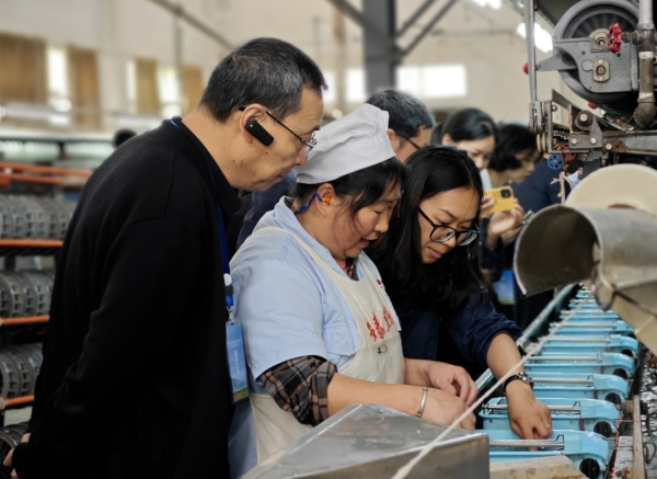 在南充市銀海絲綢黃金繭蠶?,F(xiàn)代農(nóng)業(yè)園區(qū),小分隊到標(biāo)準(zhǔn)化蠶室實地體驗了自動化、省力化、智能化養(yǎng)蠶設(shè)備,站在軌道車上,操控軌道車移動,并結(jié)合電動撒石灰機,演示實際效果,技術(shù)負責(zé)人表示軌道車下一步將實現(xiàn)智能化養(yǎng)蠶模式。同時小分隊就智能化、省力化養(yǎng)蠶設(shè)備的使用情況及“本土化”與相關(guān)負責(zé)人進行了深入交談,希望可以結(jié)合鎮(zhèn)巴縣蠶桑養(yǎng)殖、蠶桑資源開發(fā)和后期加工情況,積極尋求合作機會。