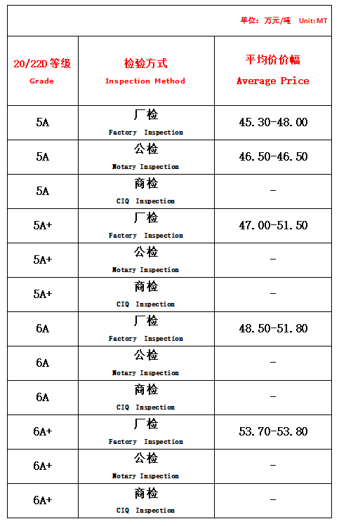 【本周高品位生絲協(xié)作單位成交價(jià)格區(qū)間】