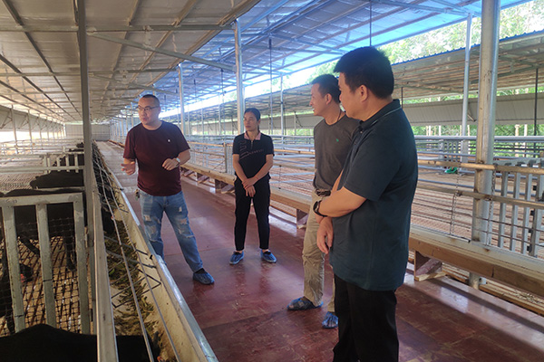 創(chuàng)新團隊一行聽取了“桑樹多元化利用示范基地項目”建設(shè)單位主要負責(zé)人對項目情況的相關(guān)介紹,并實地參觀項目建設(shè)現(xiàn)場及馬山黑山羊母羊養(yǎng)殖繁育情況,從飼料桑園規(guī)劃、飼料桑品種選擇與栽培技術(shù)、桑飼料加工廠與生產(chǎn)線完善、桑飼料加工技術(shù)等方面提出了技術(shù)指導(dǎo)。創(chuàng)新團隊建議企業(yè)加強與相關(guān)技術(shù)團隊合作,在蠶羊兼養(yǎng)、桑葉資源高效利用等方面獲得技術(shù)支撐與保障,為拓展桑樹資源多元化利用途徑、促進蠶桑產(chǎn)業(yè)鏈延長做好示范帶動作用。