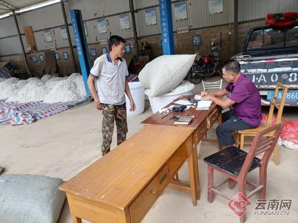 在蠶繭收購現(xiàn)場,一派熱鬧繁忙的景象。蠶農(nóng)們帶來的一筐筐、一袋袋潔白的蠶繭,不一會兒就堆成小小的“雪山”,白花花的蠶繭映襯著蠶農(nóng)豐收的笑臉。公司技術(shù)人員根據(jù)蠶繭的繭層率、化蛹率及水分含量情況等評定蠶繭是否為達標(biāo)繭,并按質(zhì)論價、優(yōu)質(zhì)優(yōu)價,確定質(zhì)量后將其過秤、定級登記開票,以一級繭每公斤62元、二級繭每公斤60元的價格收購。