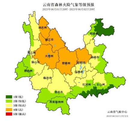 預(yù)計,迪慶東部、麗江、大理、楚雄、昆明北部4級,迪慶西部、怒江中部和南部、保山東部、臨滄、普洱北部和中部、昆明南部、玉溪、紅河北部、文山西北部、曲靖西部、昭通西南部3級,其它地區(qū)1~2級。