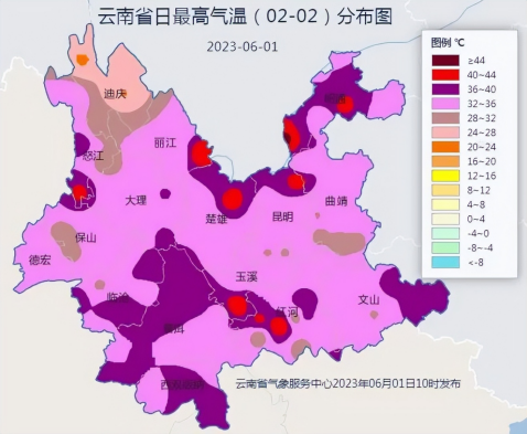 近期,云南大部一直持續(xù)晴熱,自然降水稀少,各地氣溫居高不下,部分站點(diǎn)最高氣溫再創(chuàng)新高。昨天,金沙江、元江、瀾滄江河谷有55站日最高氣溫在35℃以上(最高巧家44.4℃)。