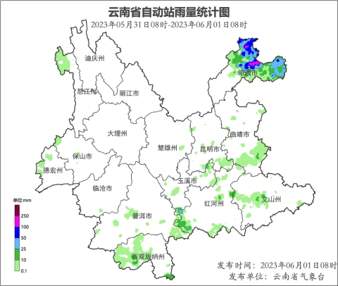 06月01日20時到06月02日20時:昭通、曲靖、文山、紅河南部、普洱南部、西雙版納、臨滄西部、德宏、保山北部、怒江西部多云有陣雨局部中雨,其它地區(qū)晴間多云。