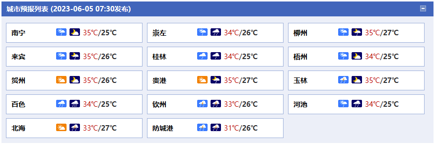 廣西氣象臺(tái)5日05時(shí)發(fā)布預(yù)報(bào):