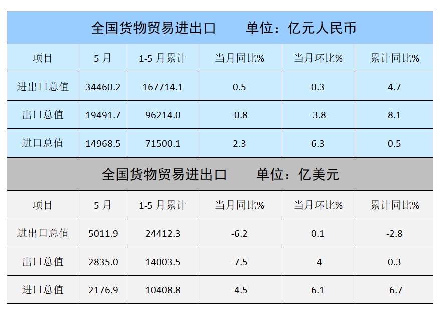 紡織品服裝出口按人民幣計:2023年1-5月,紡織服裝累計出口8123.7億元,比去年同期(下同)增長2.1%,其中紡織品出口3904.8億元,下降2.4%,服裝出口4218.9億元,增長6.6 %。