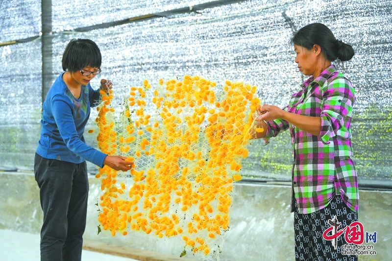 “今年我們村準(zhǔn)備養(yǎng)6季黃金繭。第一季養(yǎng)了130張,每張能產(chǎn)45公斤以上,總共可以收獲5800多公斤,能賣20多萬元?!甭楦袎未妩h支部副書記任春燕介紹。
