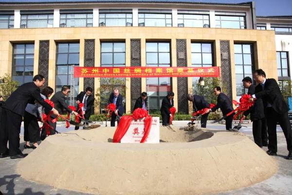 2018年11月10日,蘇州中國絲綢檔案館奠基開工,聯(lián)合國教科文組織世界記憶項(xiàng)目國際咨詢委員會(huì)副主席洛塔爾·喬丹、帕帕·摩瑪·迪奧普,國家檔案局副局長付華,市委副書記、市長李亞平出席奠基儀式