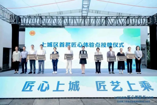 為了用匠心喜迎杭州亞運,活動上,發(fā)布了上城區(qū)首批18個匠心體驗點,并向各體驗點勞模工匠領(lǐng)銜人授牌。匠心體驗點是區(qū)總工會依托轄區(qū)勞模工匠資源,為喜迎亞運精心籌備,每個點位落實“五個一”,即:一位勞模工匠領(lǐng)銜人、一塊匠心體驗點銅牌、一本“匠心上城”宣傳冊、一個介紹匠心體驗點的二維碼、一個詳解匠人匠心的短視頻,旨在詮釋上城勞模工匠的唯專唯精、匠人匠心,讓廣大市民游客走進體驗點感悟勞模精神、勞動精神、工匠精神。
