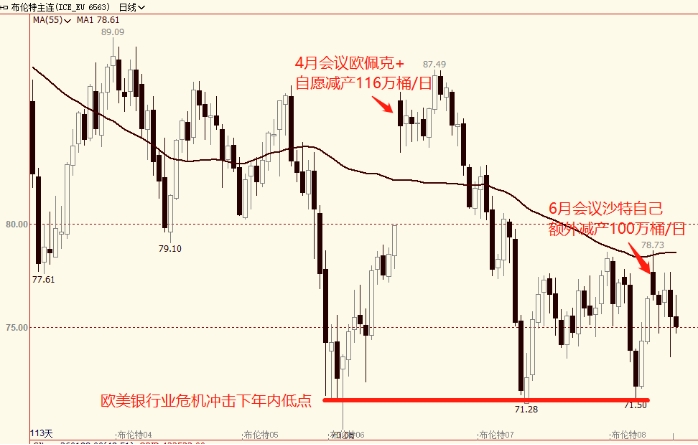 油價(jià)已經(jīng)連續(xù)5周維持在一個(gè)較為狹窄的區(qū)間內(nèi)波動,下檔背靠歐美銀行業(yè)危機(jī)打出的年內(nèi)低點(diǎn)形成區(qū)間下沿,上方則受制于一季度波動區(qū)間下沿壓制。多空因素交織下的局面讓投資者越來越難以押注,尤其是在周四夜盤市場傳出伊朗原油重回市場的假消息之后,油價(jià)出現(xiàn)了近4美元/桶的大幅波動,讓投資者難以明確判斷下一步油價(jià)的運(yùn)行方向。雖然伊朗原油出口的消息已經(jīng)被官方辟謠,但消息出現(xiàn)后油價(jià)的急跌過程一度形成了恐慌氛圍,甚至對銅等大宗商品都產(chǎn)生了影響。這樣的假消息給市場帶來的沖擊顯然改變了不少投資者的預(yù)期,尤其是如何給6月OPEC+會議延長減產(chǎn)及沙特自己額外減產(chǎn)100萬桶/日的努力做一個(gè)合理定價(jià)增加了難度。