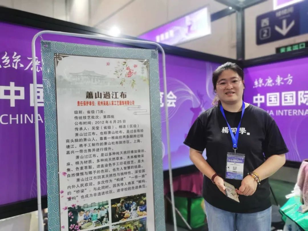 蕭山過江布對(duì)二十四節(jié)氣變化中的不同植物進(jìn)行植物印染。這位楊同學(xué)是蕭山過江布的區(qū)級(jí)傳承人,她將把進(jìn)行茶染和茶葉非遺進(jìn)行融合推廣。