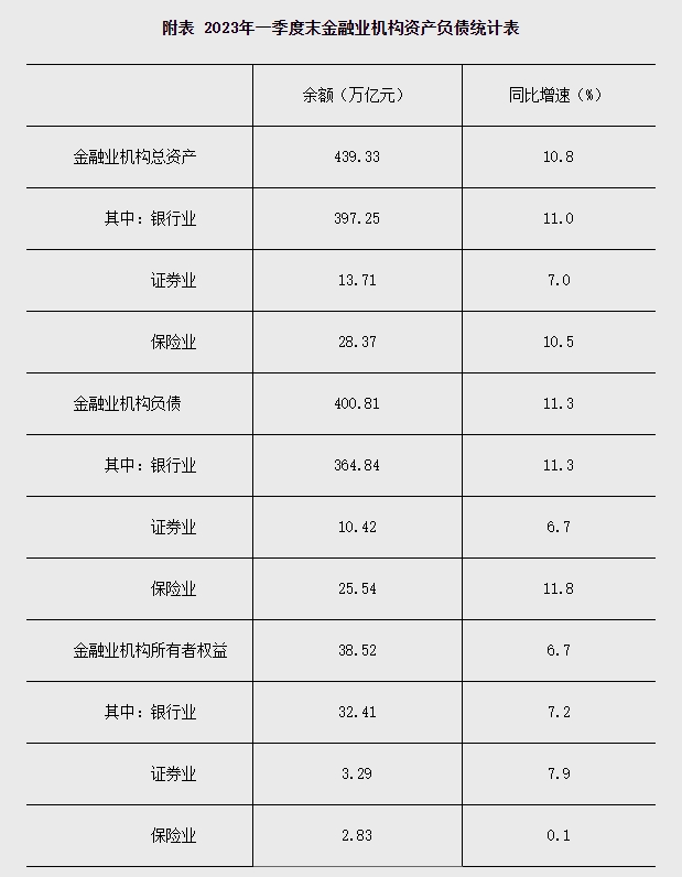 一季度末我國(guó)金融業(yè)機(jī)構(gòu)總資產(chǎn)439.33萬(wàn)億元 同比增長(zhǎng)10.8%
