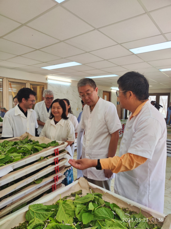 馬輝大使考察古中蠶??萍己献髦行酿B(yǎng)蠶室