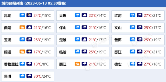 云南各城市天氣預(yù)報(bào)。(來源:中國天氣網(wǎng))