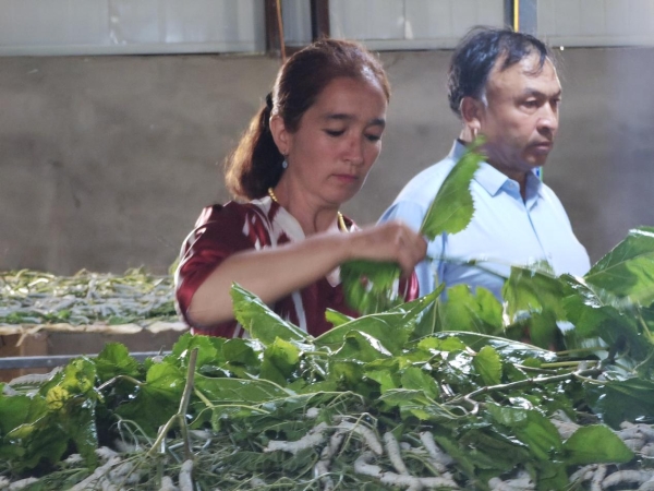 “在和田蠶??茖W(xué)研究所的大力支持下,我們專(zhuān)門(mén)派有經(jīng)驗(yàn)的技術(shù)人員到這里進(jìn)行技術(shù)指導(dǎo)。在去年秋季少量養(yǎng)蠶的基礎(chǔ)上,今年達(dá)到養(yǎng)蠶面積五盒左右,經(jīng)過(guò)改良,今年春季養(yǎng)蠶情況非常好,單產(chǎn)有望超過(guò)30公斤?!毙陆吞镄Q??茖W(xué)研究所高級(jí)農(nóng)藝師吾布力·艾合買(mǎi)提說(shuō)。