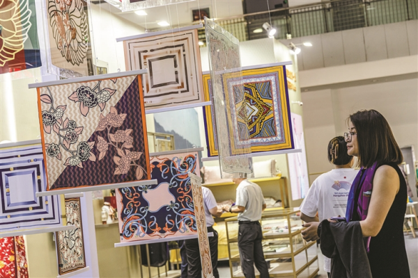 “整個展廳我都仔仔細(xì)細(xì)逛了一圈。”受邀參展的杭州笑語旗袍負(fù)責(zé)人徐明剛把自家展位布置好,就迫不及待地去其他展位“取經(jīng)”,“一些新面料、新工藝,得親眼看到、上手摸一摸,才能真正體會到效果?!敝庇^地看到產(chǎn)品,有問題直接現(xiàn)場發(fā)問,徐明坦言,他已與多家上下游企業(yè)達(dá)成合作意向。