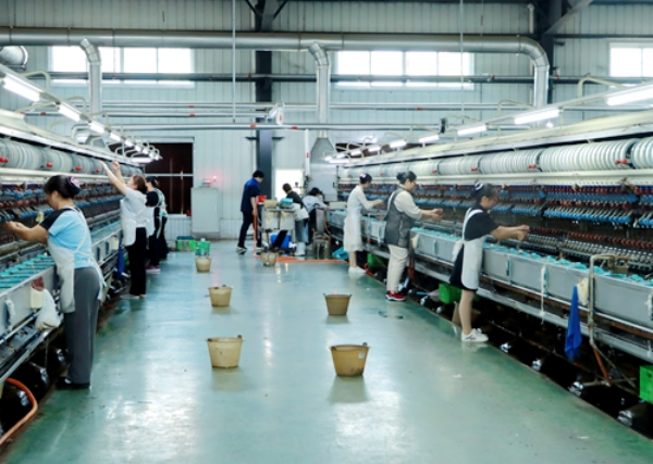 走進高縣慶符鎮(zhèn)的四川新絲路繭絲綢有限公司生產(chǎn)車間,自動繅絲機正開足馬力將蠶繭加工成為精品繭絲。該企業(yè)作為引領高縣現(xiàn)代蠶業(yè)的龍頭企業(yè),年加工蠶繭原料3000余噸,生產(chǎn)5A級以上生絲600余噸。目前已建成智能化蠶種制造催青車間、智能化繅絲生產(chǎn)線、繭絲檢測中心以及配套污水處理設施等,正著力于加快構建“桑、蠶、種、繭、絲、綢”為一體的工業(yè)新體系,產(chǎn)品不僅暢銷國內(nèi),更出口到了東南亞地區(qū),引領高縣繭絲綢產(chǎn)業(yè)邁向了新高度。