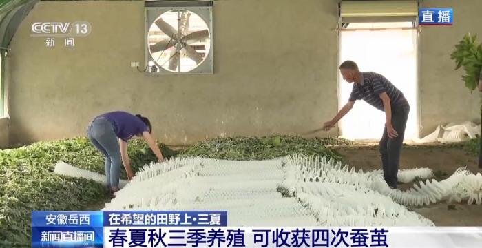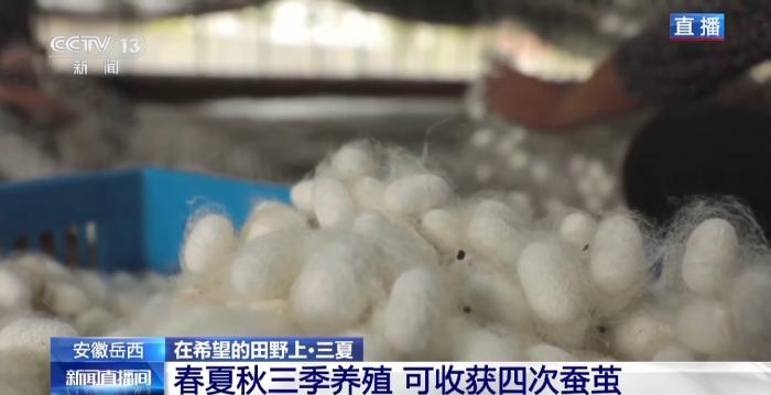 當(dāng)前這些即將結(jié)繭的熟蠶,其實是今年飼養(yǎng)的第二批了,在岳西縣目前形成了一年中,春、夏、秋三季養(yǎng)殖,分四批收獲的養(yǎng)殖模式。