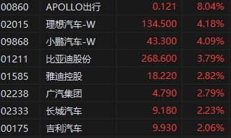 汽車股繼續(xù)強(qiáng)勢,理想、小鵬漲超4%、比亞迪(268.6, 9.80, 3.79%)漲超3%。國家統(tǒng)計(jì)局表示,今年以來我國新能源汽車生產(chǎn)和出口都實(shí)現(xiàn)大幅增長,市場競爭力穩(wěn)步增強(qiáng)。